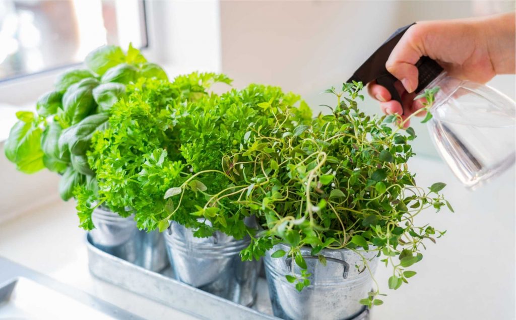 Step 5: Water the herbs. Water the herbs regularly, but be careful not to over-water them. Aim for about 1 inch of water per week.